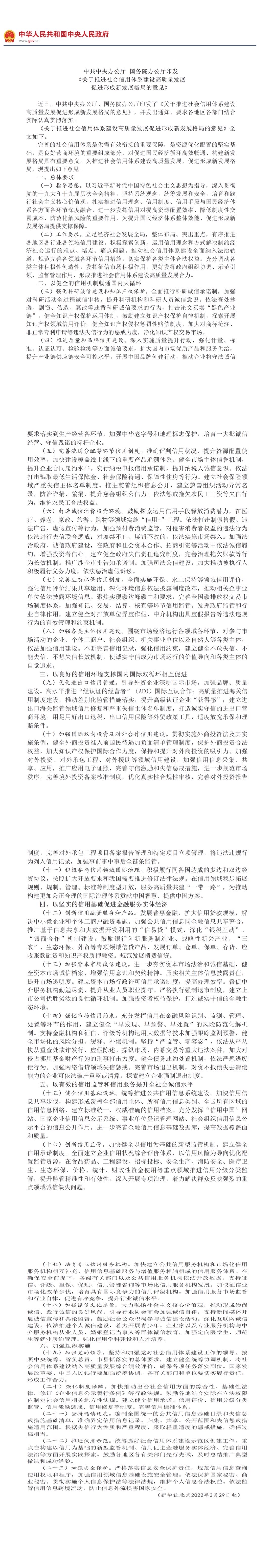 《關于推進社會信用體系建設高質(zhì)量發(fā)展 《關于推進社會信用體系建設高質(zhì)量發(fā)展促進形成新發(fā)展格局的意見